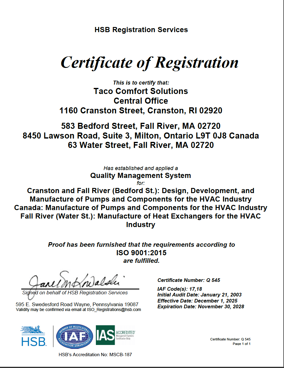 Cranston, RI; Fall River, MA & Milton ON facilities